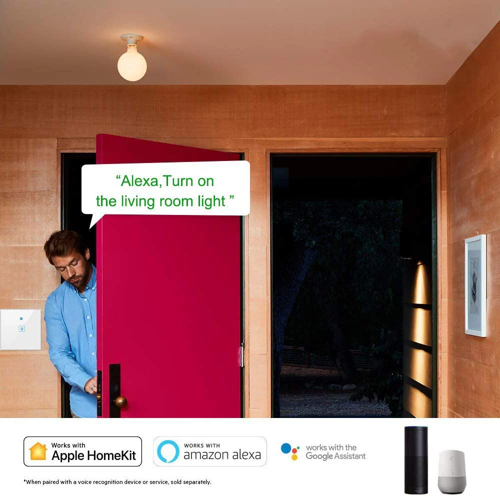 2 Gang WIFI Wall Switch, Smart Light Double Switch, Glass Panel Contact Sensor Interrupter EU Plug